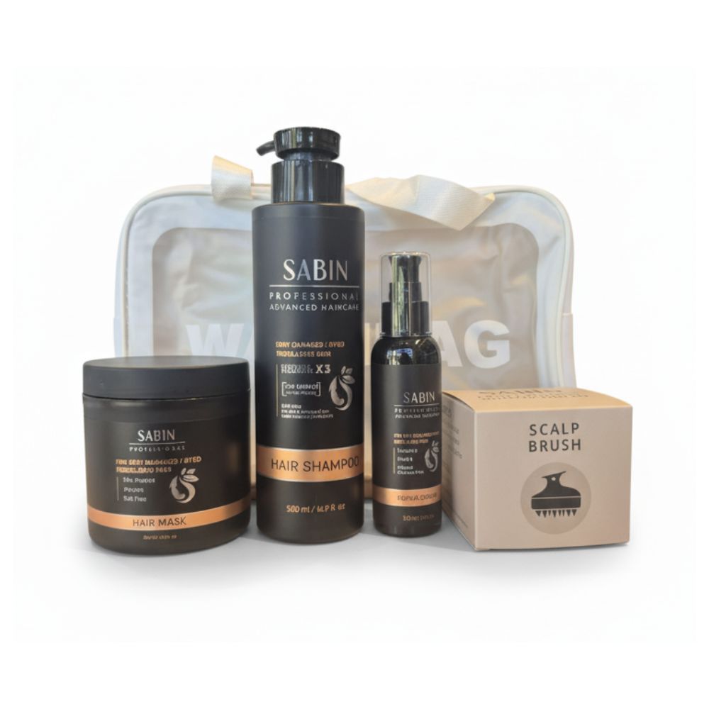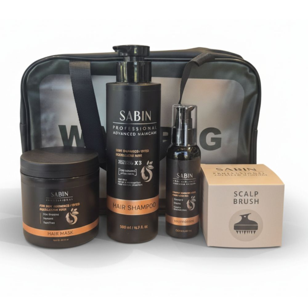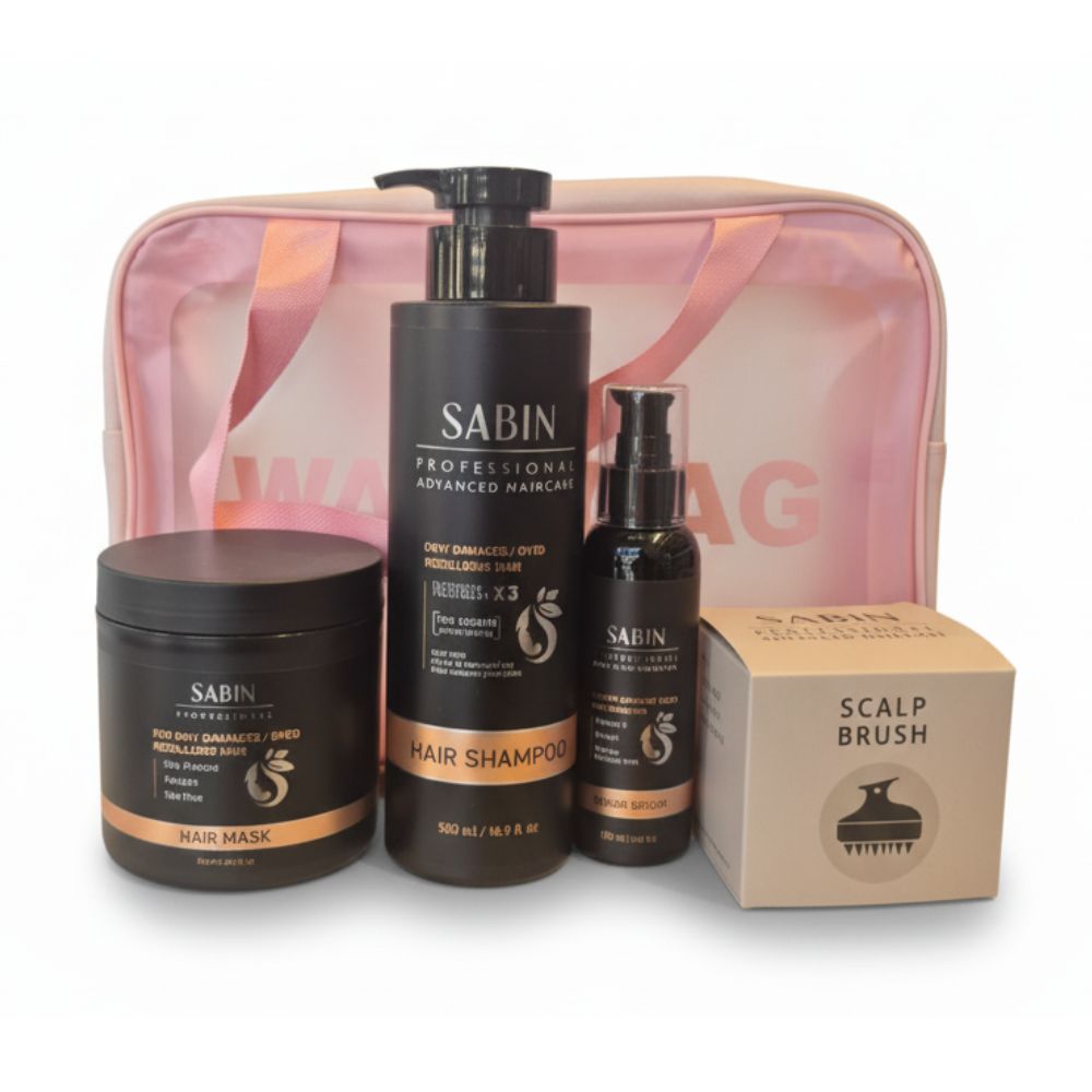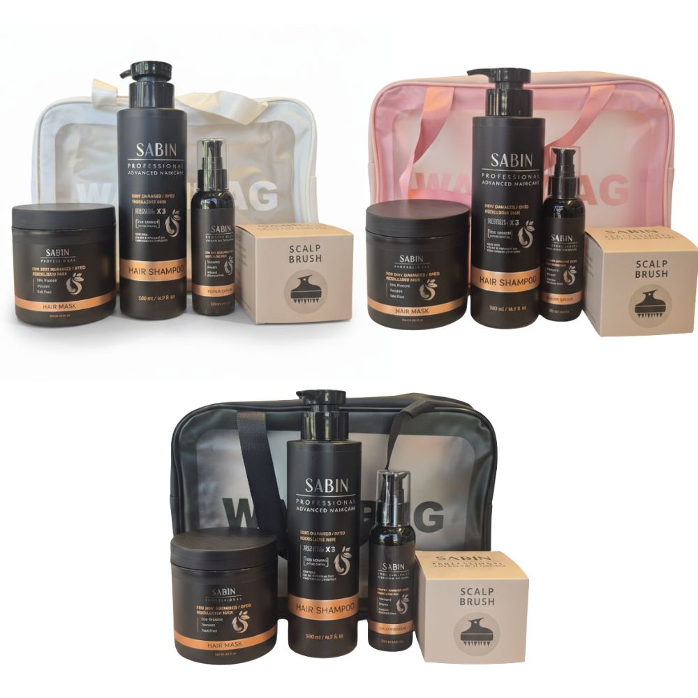 תיק ב3 צבעים לבחירה ו4 מוצרים סבין שמפו + מסכה + סרום + מברשת עיסוי