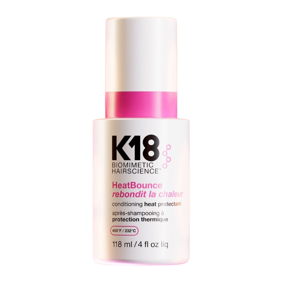 הספריי k18 מגן חום ומרכך ללא שטיפה קל משקל שמונע נזקי חום עד לטמפרטורה של 232°C מבפנים החוצה.